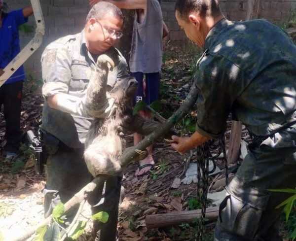 Os agentes chegaram de forma rápida ao local e, com equipamentos de contenção e manejo adequados, efetuaram a captura do bicho-preguiça. Em seguida o animal foi dirigido em segurança para uma área de soltura em seu habitat natural, assegurando assim sua proteção e bem-estar.