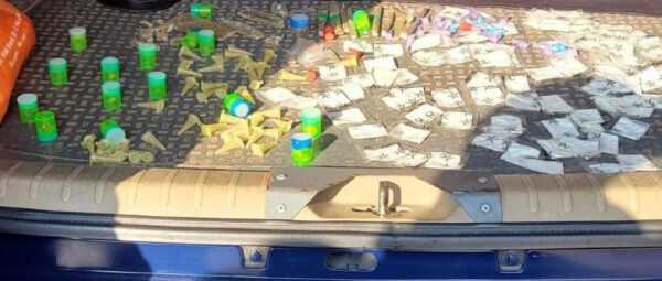 Os detidos chamaram a atenção das equipes ao dispensarem uma pochete e saírem correndo quando avistaram as viaturas. Eles foram interceptados para averiguação e no interior da pochete havia várias embalagens contendo substâncias, aparentemente entorpecentes. Outra sacola foi localizada com a ajuda da cadela policial Ventania.