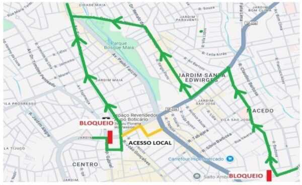 Os motoristas necessitarão entrar à avenida Capitão Gabriel e seguir até a rua Sete de Setembro, cruzar a rua João Gonçalves no sentido rua Diogo de Farias. Entrar à rua Presidente Prudente seguindo até à avenida Monteiro Lobato, entrar à rua Francisco de Paula Santana e, em seguida, pegar a avenida Antônio de Souza no sentido bairro.
